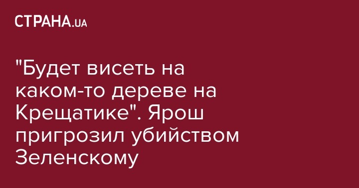 "Будет висеть на каком-то дереве на Крещатике". Ярош пригрозил убийством Зеленскому