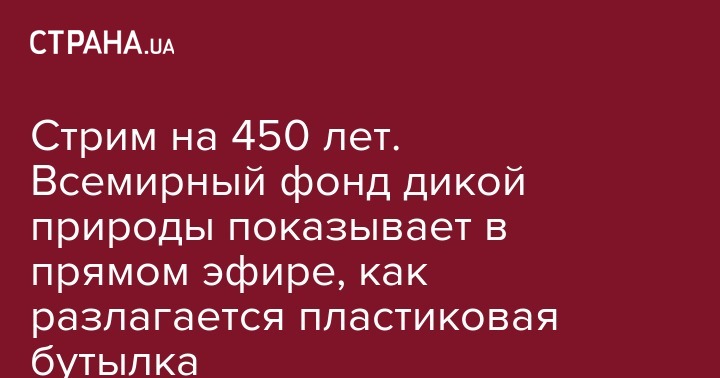 Всемирный фонд дикой природы (WWF) запустил прямую трансляцию, во время которой будет разлагаться пластиковая бутылка. Стрим пообещали вести 450 лет, то есть финал увидят наши праправнуки, сообщает Тһе-village.