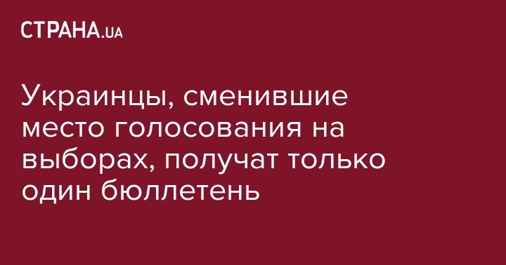 Украинцы, которые изменят место голосования перед выборами в Верховную Раду, получат на избирательном участке только один бюллетень - по партийным спискам. Оба бюллетеня (для голосования за партию и за мажоритарного кандидата) получат только те избиратели, которые изменят место голосования в пределах "родного" округа или поедут голосовать по месту регистрации. Об этом говорится на странице гражданской сети "Опора" в Facebook.