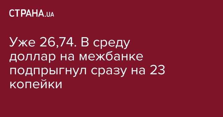 Уже 26,74. В среду доллар на межбанке подпрыгнул сразу на 23 копейки