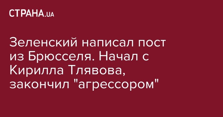 Зеленский написал пост из Брюсселя. Начал с Кирилла Тлявова, закончил "агрессором"