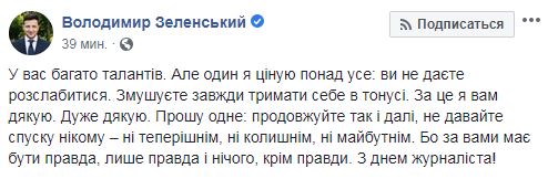 "Ибо за вами должна быть правда, только правда и ничего, кроме правды. С днем ​​журналиста!", - добавил он.