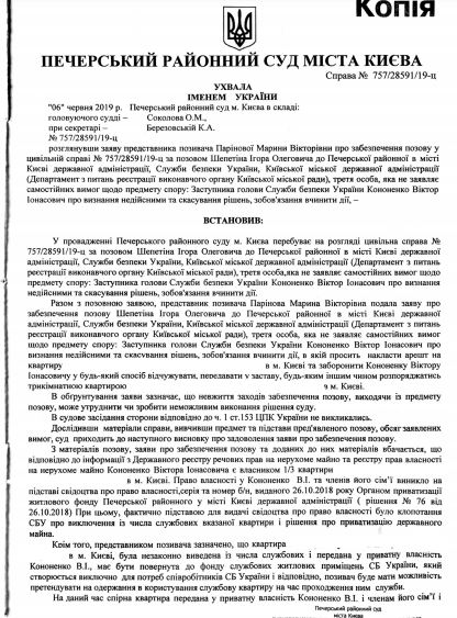 "Коллеги, информирую, что сегодня, в рамках учебно-воспитательных мероприятий по углублению демократии, по нашему иску суд арестовал имущество одного из самых ближайших соратников Порошенко - заместителя Главы СБУ Кононенко. Того самого, который выполнял грязные задачи Порошенко и Грицака, а потом получил от государства и присвоил себе дорогую квартиру в элитном комплексе центре Киева", - отметил Портнов.