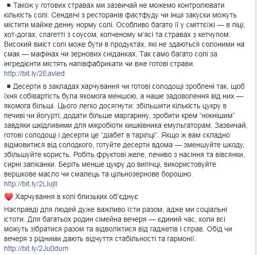 В частности, неполноценное питание сопряжено со чрезмерным потреблением соли, сахара, переработанного мяса, а также означает недостаток цельнозерновых злаков и фруктов в рационе. "Это также высокий уровень потребления красного мяса и процесcированных (обработанных - Прим. Ред.) мясных продуктов (сосисок, колбасы), сладких подслащенных напитков и транс-жиров (прежде всего, это маргарины в кондитерских изделиях и соусах)", - написала Супрун.