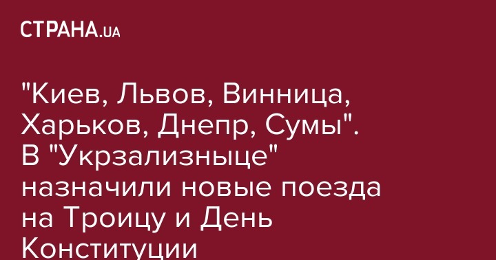 Кроме этого, в "Укрзализныци" продлили маршрут следования поезда №779/780 Сумы-Киев до Винницы и назначила ему дополнительные рейсы на 14, 17, 28 июня и 1 июля.