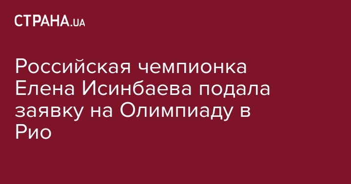 Российская спортсменка, двукратная олимпийская чемпионка в прыжках в высоту с шестом Елена Исинбаева намерена принять участие в Олимпийских Играх в Рио-де-Жанейро и уже подала заявку. Об этом сообщает Интерфакс.
