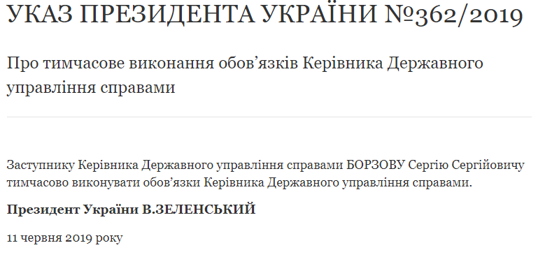 Зеленский уволил шефа Госуправления делами и назначил и.о.
