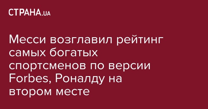 Месси возглавил рейтинг самых богатых спортсменов по версии Forbes, Роналду на втором месте