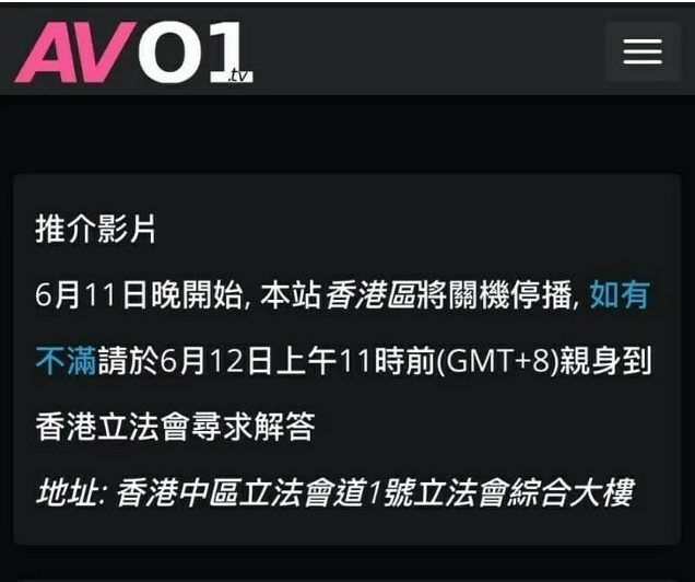 Одним из них был AVO1 - сайт с азиатским порно, у которого даже есть собственный раздел на Pornhub. 12 июня ресурс прекратил работу и закрыл доступ ко всем видео, а на главной странице оставил послание для пользователей: если они недовольны изменениями, то могут "найти ответы" у здания Законодательного собрания.