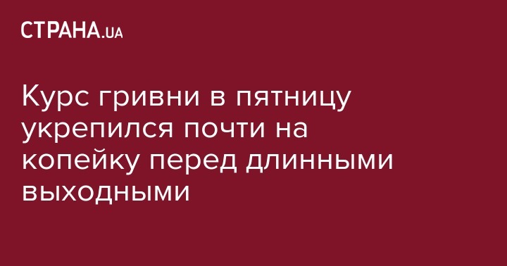 Курс гривни в пятницу укрепился почти на копейку перед длинными выходными