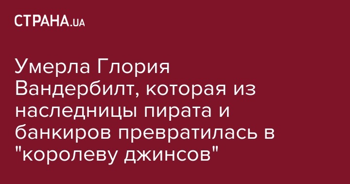 Американский модельер, писательница и одна из создательниц синих джинсов Глория Вандербилт умерла в возрасте 95 лет. Об этом сообщает Independent.