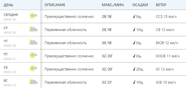 "Страна" собрала данные от шести синоптических источников, чтобы дать картину того, какой будет погода на этой неделе с 18 по 24 июня.