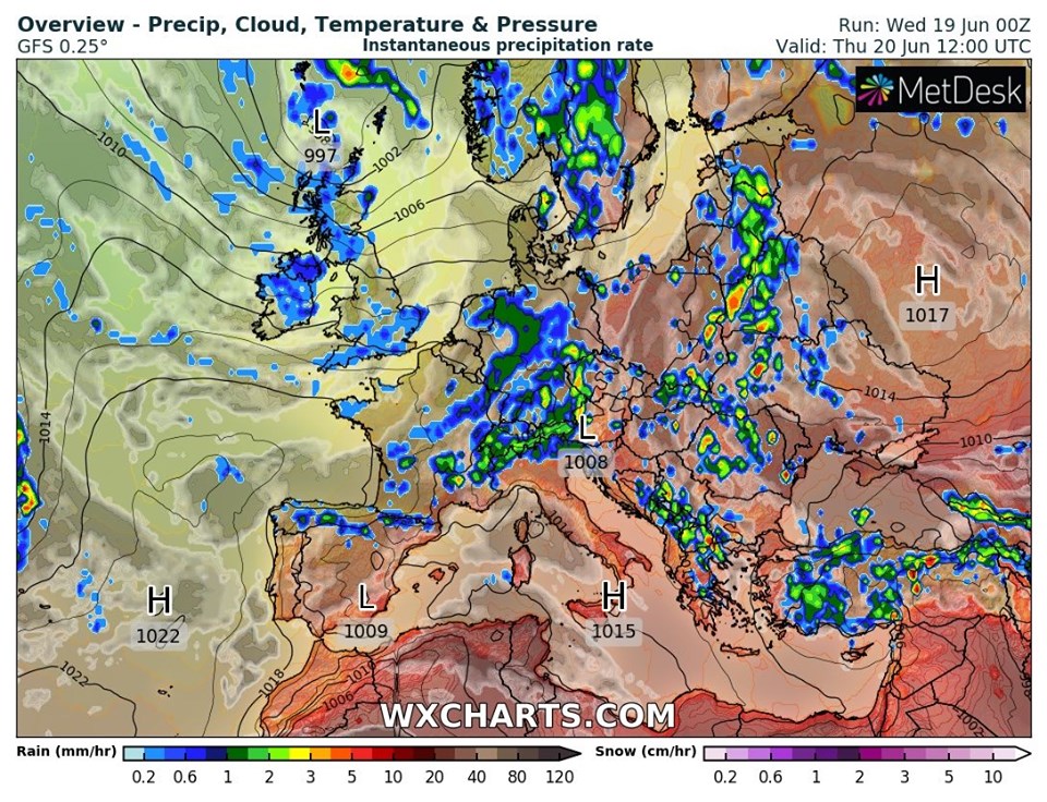 В Киеве 20-го июня ожидается жара +30...+32 градуса, есть вероятность кратковременного дождя с грозой. К концу недели жара даже усилится в Украине, только 22-го июня в западных областях посвежеет. Грозовые дожди наиболее вероятны в западных областях.