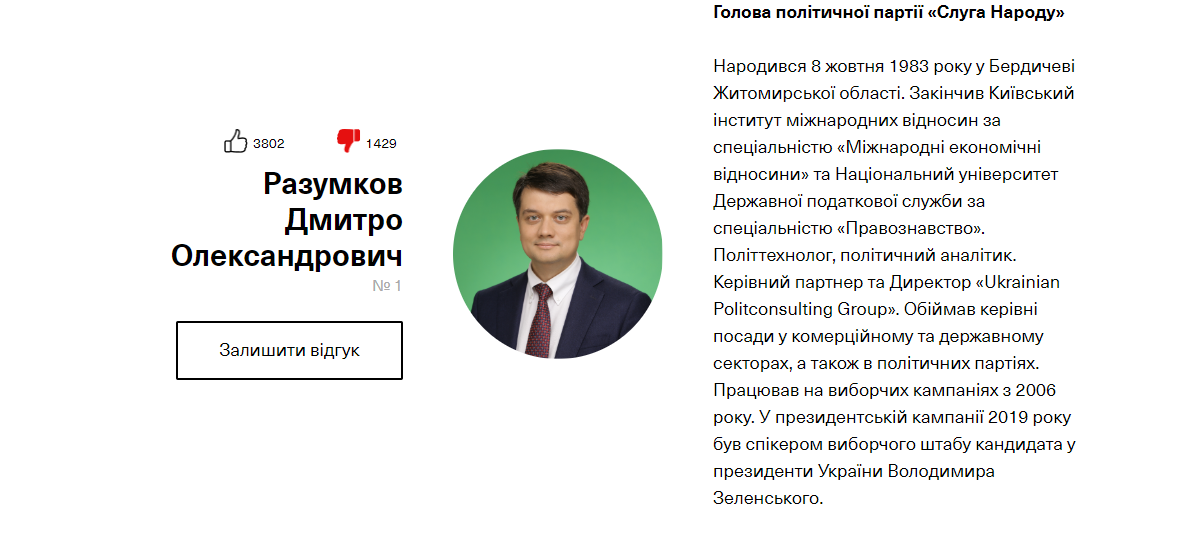 Несмотря на слова Разумкова, все еще можно поставить дизлайк кандидатам "Слуги народа" без компромата на них