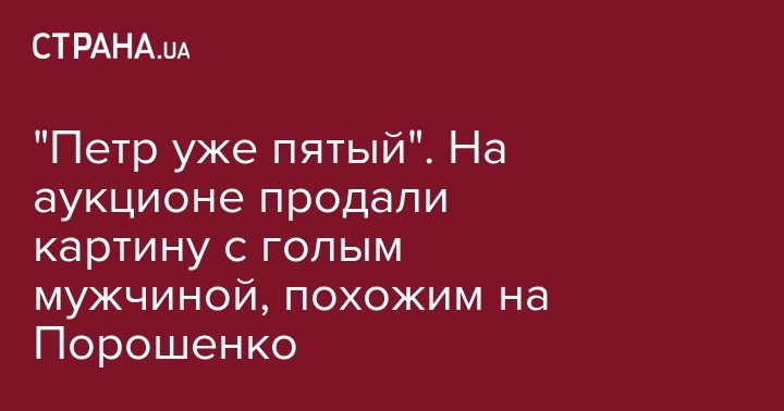 Заместитель главного редактора издания "Страна.ua" Светлана Крюкова сообщила о продаже на аукционе картины "Петр уже пятый" с голым мужчиной, который похож на бывшего президента Украины Петра Порошенко. Об этом зам главного редактора издания сообщила на своей странице в Facebook.