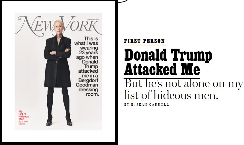75-летняя журналистка утверждает, что в середине 1990-х годов встретилась с Дональдом Трампом в фешенебельном нью-йоркском универмаге Bergdorf Goodman, где он изнасиловал ее в примерочной. Подробный рассказ изобилует различными подробностями.
