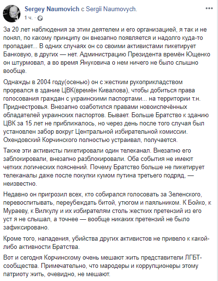 Вот и сегодня Корчинскому очень мешают жить представители ЛГБТ-сообщества. Примечательно, что мародеры и коррупционеры этому патриоту жить, очевидно, не мешают".