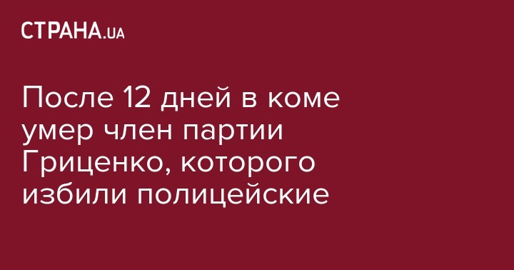 После 12 дней пребывания в коме умер член партии "Гражданская позиция" Анатолия Гриценко Александр Комарницкий из Винницы, которого ранее избили полицейские. Об этом сообщает пресс-служба партии.