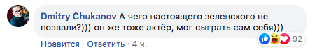 "А почему настоящего Зеленского не позвали? Он же тоже актер, мог сыграть сам себя".