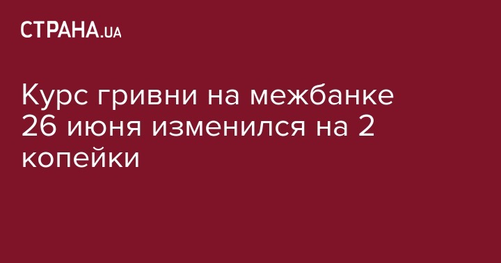 В среду, 26 июня, курс гривни на межбанковском валютном рынке Украины укрепился до 26,17 грн/$1 с 26,19 грн/$1 в предыдущий рабочий день.