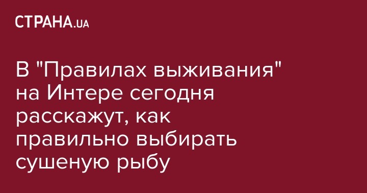 Сегодня, 27 июня, в ток-шоу "Правила выживания" на канале "Интер" ведущий Александр Лукьяненко вместе с экспертами проекта расскажет телезрителям, на что следует обращать внимание при покупке сушеной и вяленой рыбы, если вы не хотите угодить на больничную койку. Начало ток-шоу в 14:45, передает пресс-служба "Интера".