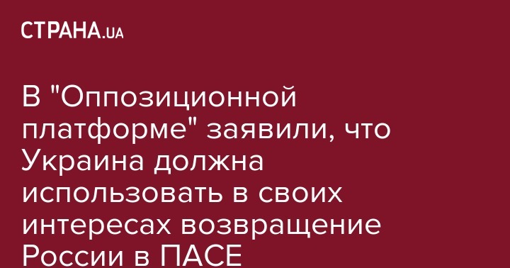 В "Оппозиционной платформе" заявили, что Украина должна использовать в своих интересах возвращение России в ПАСЕ