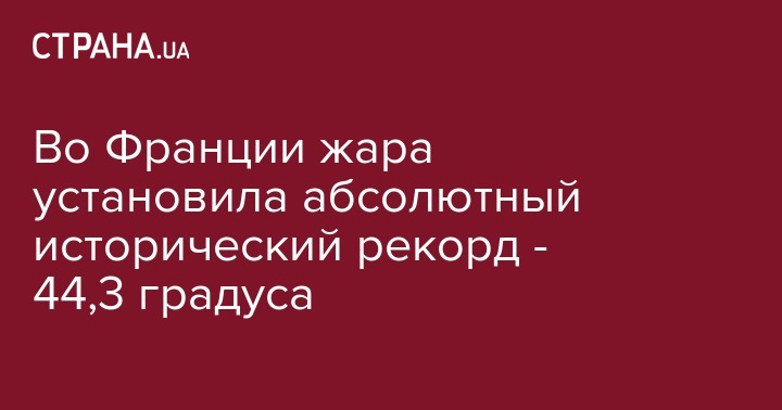 В южной части Франции в пятницу, 28 июня, был поставлен новый рекорд температуры, которая стала самой высокой за всю историю метеонаблюдений в стране. Об этом сообщает Интерфакс со ссылкой на французские издания.