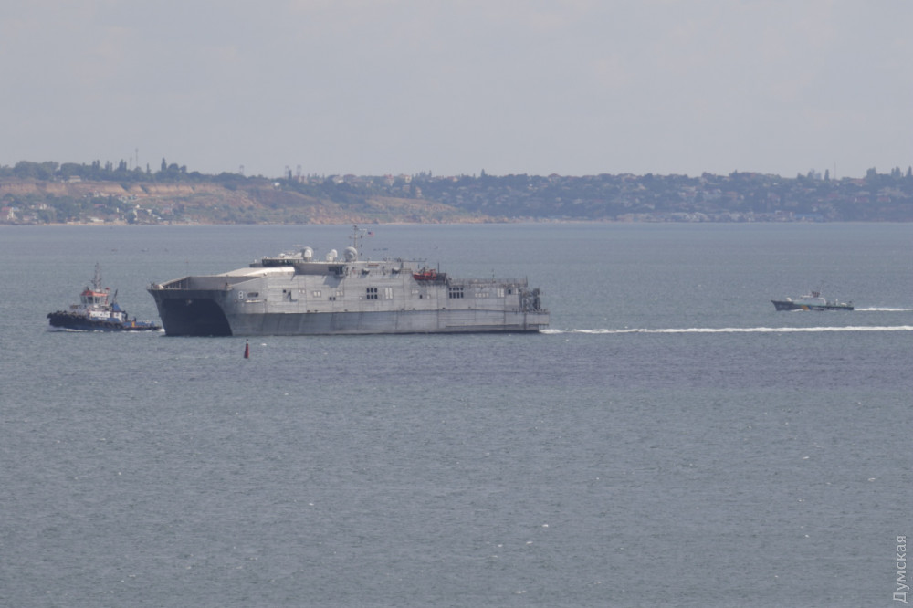 "Американский быстроходный транспортно-десантный корабль USNS Yuma за ночь пересек Черное море и сегодня утром зашел в порт Одесса. Катамаран ошвартовался у причала 1к", - сказано в сообщении.