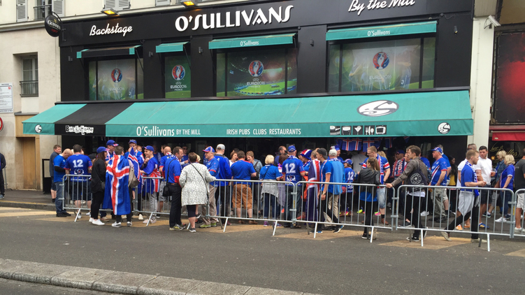 Исландские болельщики разминаются перед матчем в окрестностях Мулен Ружа, фото: uefa.com