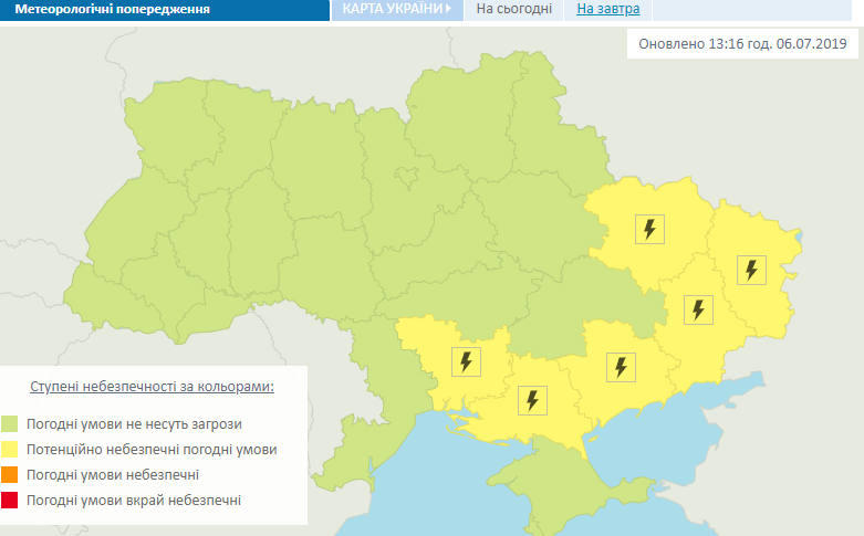 Сегодня, 6 июля, в южных и восточных областях Украины объявлено штормовое предупреждение. Местами в южных областях пройдут грозовые дожди. Об этом сообщает Укргидрометцентр.