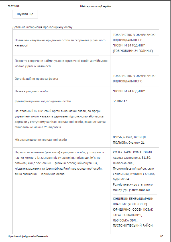 Он назвал заявления генпрокурора "дешевым пиаром и попытки удержаться на должности, а также отвлечь внимание от своей провальной и бестолковой работы в течение нескольких последних лет". Козак также обнародовал выписку из государственного реестра, "в которой подтверждается мое единоличное участие в качестве владельца телеканала".