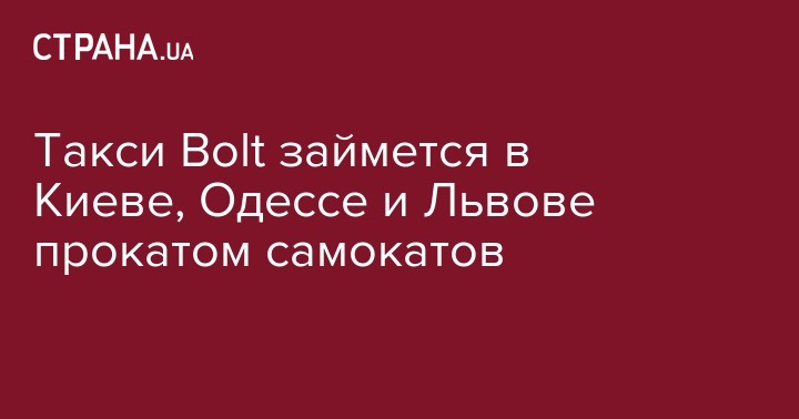 Сервис по заказу такси Bolt (ранее - Taxify) рассматривает возможность запуска услуги по прокату самокатов в Киеве, Львове и Одессе. Об этом сообщает "Интерфакс-Украина".