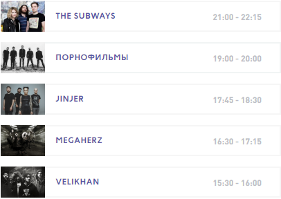 На восточно сцене сегодня выступят британцы The Subways, российская панк-группа "Порнофильмы", одна из самых известных украинских метал-групп Jinjer.