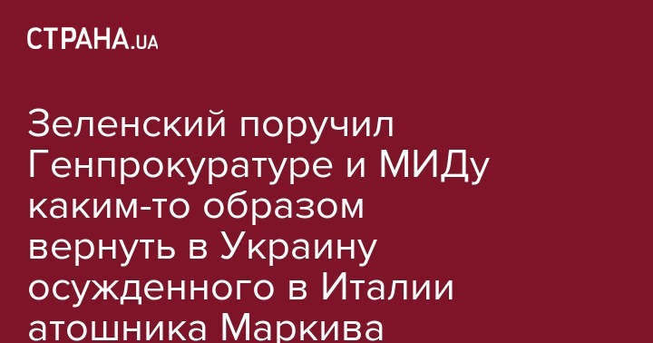 Украинский президент Владимир Зеленский поручил МИД и Генпрокуратуре Украины срочно заняться вопросом возвращения в Украину бойца Нацгвардии Виталия Маркива, который был приговорен в Италии к 24 годам лишения свободы. Об этом сообщает пресс-служба президента в пятницу.