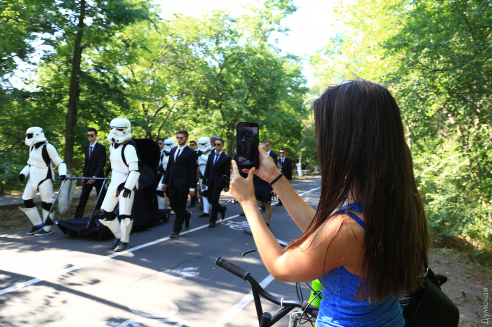 "Вейдера" сопровождали люди в костюмах Чубакки и галактических штурмовиков. Около часа ожидания ни к чему не привели - президент Украины не приехал.