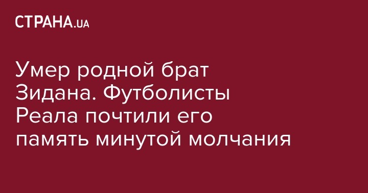 "У наставника Реала случилось большое горе. От рака скончался его родной брат - Фарид Зидан. Жизнь старшего брата Зинедина Зидана оборвалась на 55-м году жизни. Это и стало причиной отъезда наставника из тренировочного лагеря клуба", - сообщает пресс-служба сливочных.