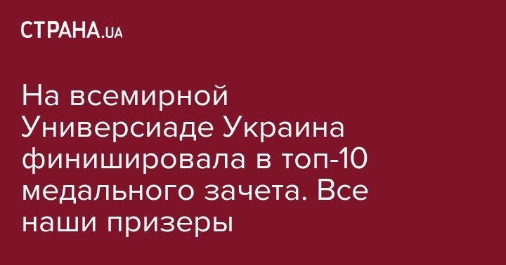 В итальянском Неаполе в воскресенье, 14 июля, завершается ХХХ Всемирная летняя Универсиада, на которой разыгрывались 250 комплектов медалей в 18 видах спорта. Сборная Украины в итоге завоевала 20 наград (6 золотых, 7 серебряных, 7 бронзовых) и заняла десятое место в медальном зачете и 11-е - в общекомандном зачете среди 170 стран-участниц, сообщает Укринформ.