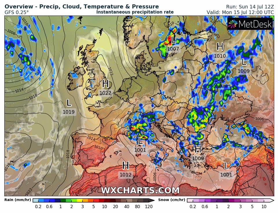 По словам синоптика, вероятность дождей с грозами очень высока на западе, севере страны и в большинстве центральных областей. При этом грозы могут сопровождаться ливнями и шквалами. А вот в Днепропетровской области, на юге и востоке Украины существенные осадки вряд ли омрачат теплый день.