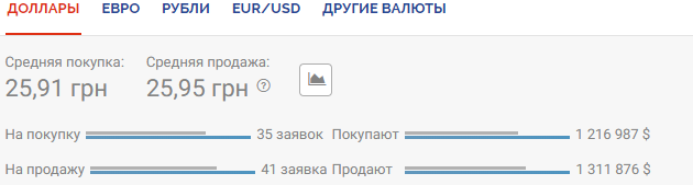 При этом на наличном рынке, по состоянию на 09:00 котировки были на уровне 25,91-25,95 грн: средняя продажа 25,95 грн и средняя покупка - 25,91 грн.