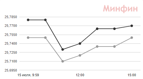 К 15:00 американская валюта поднялась до 25,77 (продажа) и 25,75 (покупка).