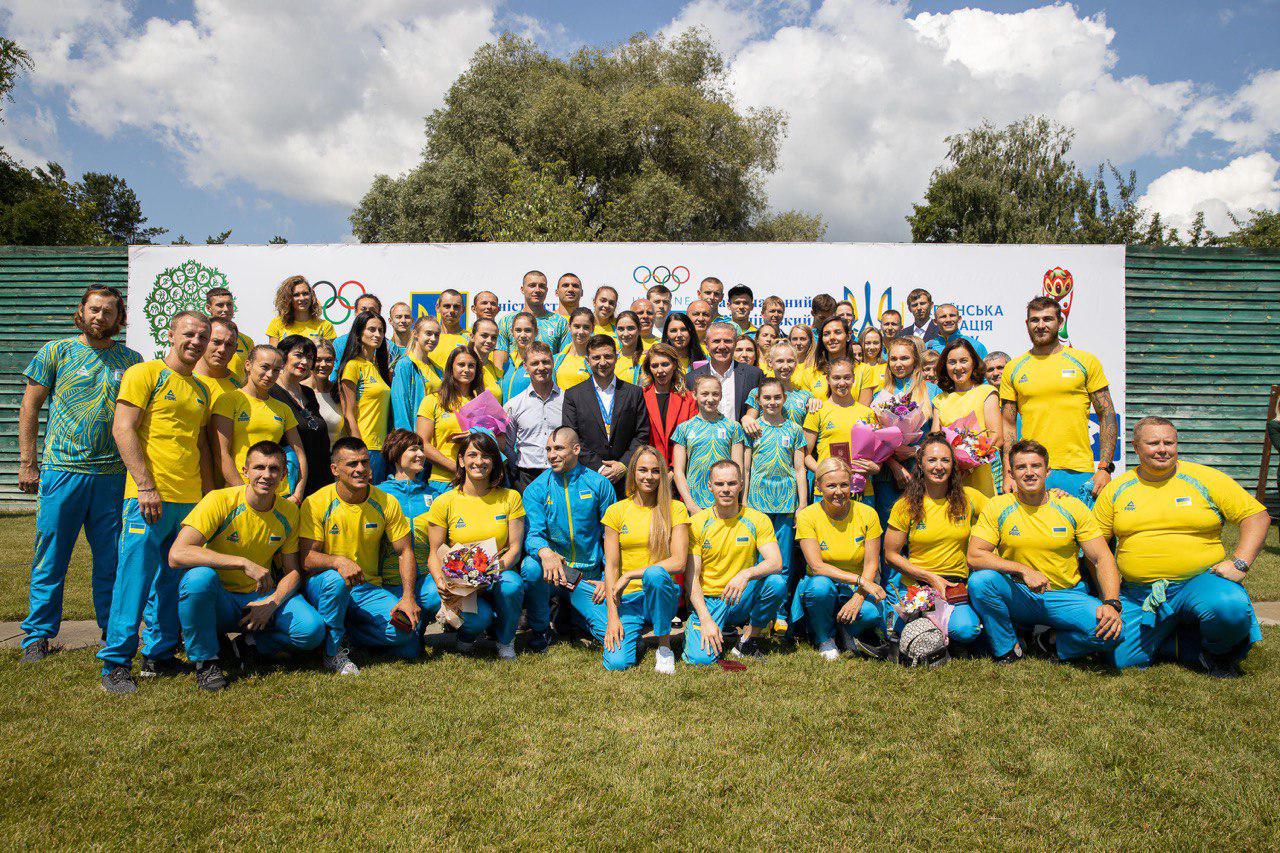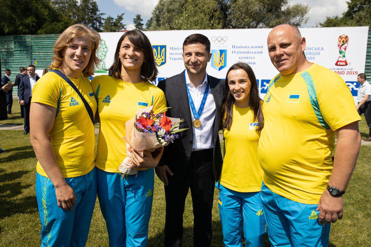 Сегодня, 16 июля президент Украины Владимир Зеленский и первая леди Елена Зеленская посетили Олимпийский учебно-спортивный центр в Конча-Заспе. После вручения госнаград чемпионам мира по футболу (U20) президент пообщался с олимпийцами и членами национальных сборных по другим видам спорта.