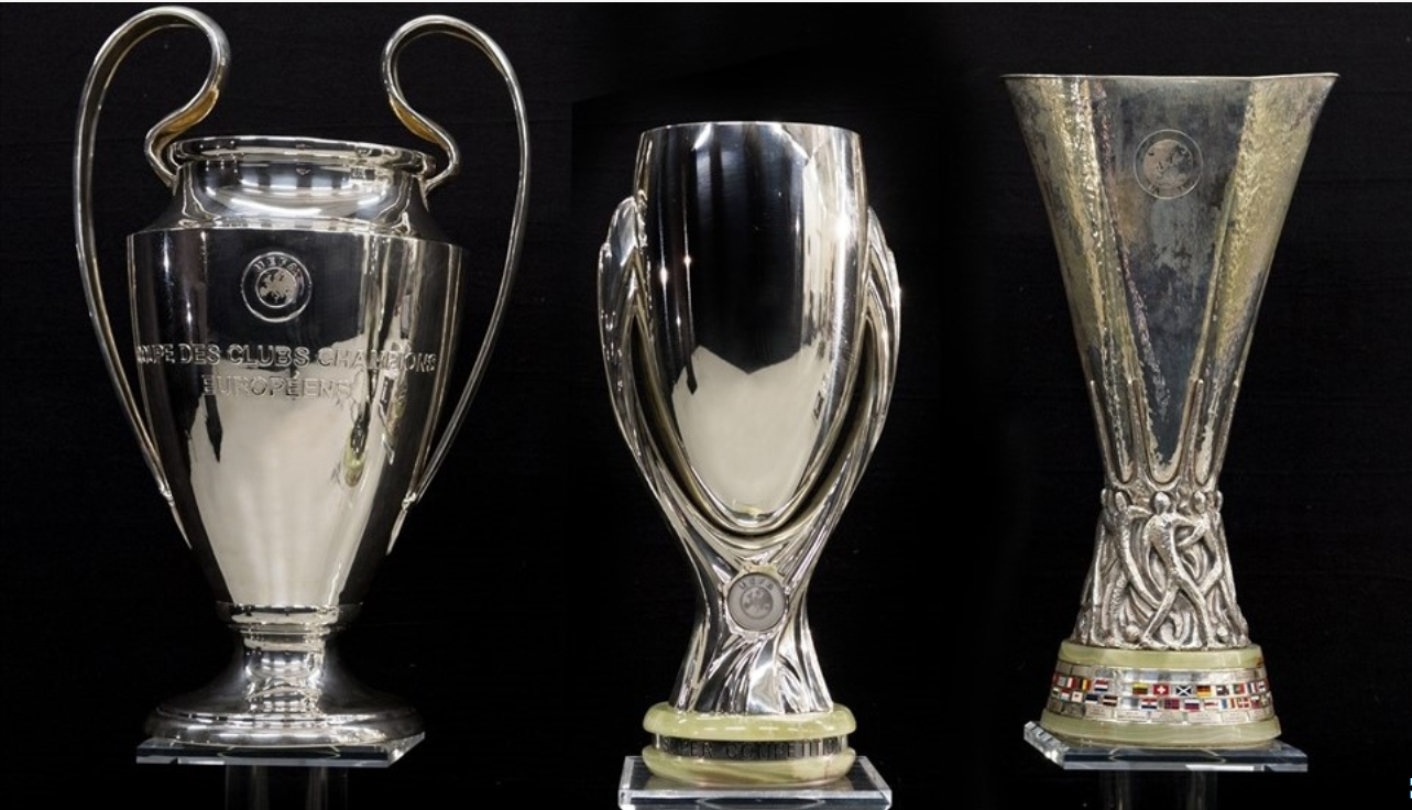 Cлева направо - Кубок Лиги чемпионов, Суперкубок УЕФА и Кубок Лиги Европы, фото: uefa.com