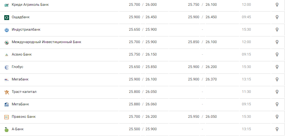 В 18:00 межбанк закрылся с котировками: 25,69 грн (покупка) и 25,73 грн (продажа). То есть с утра доллар подешевел на 26 копеек в покупке и на 27 копеек в продаже.