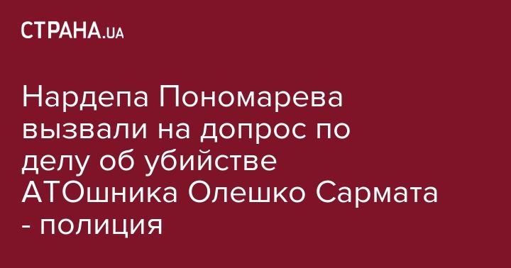 Следствие по делу об убийстве АТОшника Виталия Олешко (Сармата) вызвало на допрос в качестве свидетеля народного депутата от "Воли народа" Александра Пономарева. Об этом заявил Украинской правде пресс-секретарь Нацполиции Ярослав Тракало.