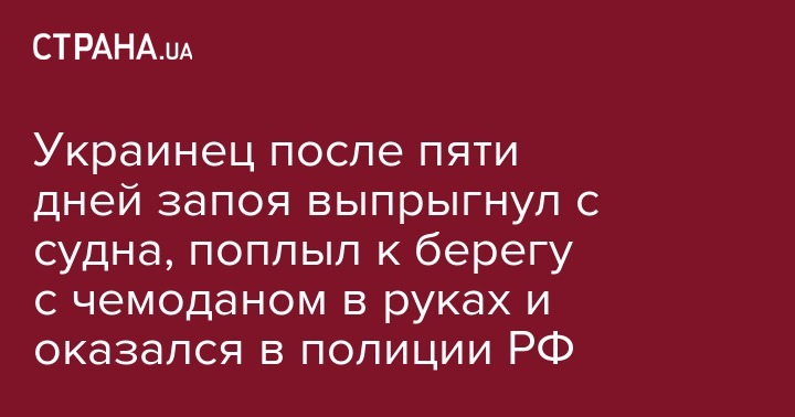 Украинец после пяти дней запоя выпрыгнул с судна, поплыл к берегу с чемоданом в руках и оказался в полиции РФ