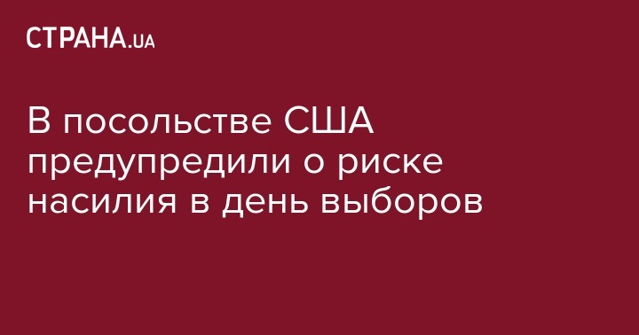 Посольство Соединенных Штатов Америки предупредило об имеющихся рисках обострения насилия в связи с парламентскими выборами в Украине в воскресенье, 21 июля. Об этом говорится в сообщении посольства США в Украине.