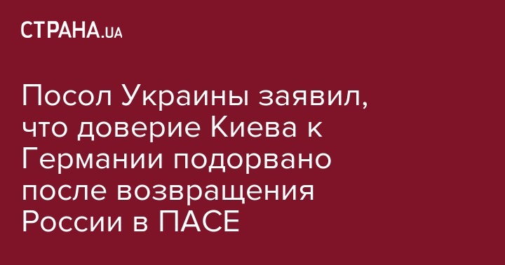 Посол Украины заявил, что доверие Киева к Германии подорвано после возвращения России в ПАСЕ