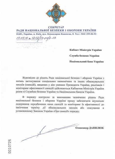 Секретарь СНБО Украины Александр Данилюк заявил о необходимости обеспечения неукоснительного соблюдения санкций и мониторинга их эффективности до истечения срока их действия или отмены в установленном законом порядке.