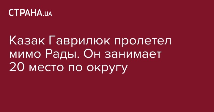 На выборах в Верховную Раду по 95 округу (Ирпень, Киевская область) действующий нардеп, козак Гаврилюк, который пять лет назад попал в Раду по этому округу, набрал мизерные 0,56% или 132 голоса избирателей и не попадает в новый парламент. Об этом свидетельствуют предварительные данные на сайте ЦИК.