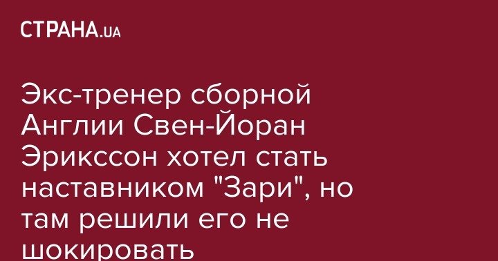 Экс-тренер футбольной сборной Англии 71-летний Свен-Йоран Эрикссон предлагал свои услуги "Заре". Руководство клуба рассматривало его кандидатуру, когда искало замену ушедшему в отставку Юрию Вернидубу.